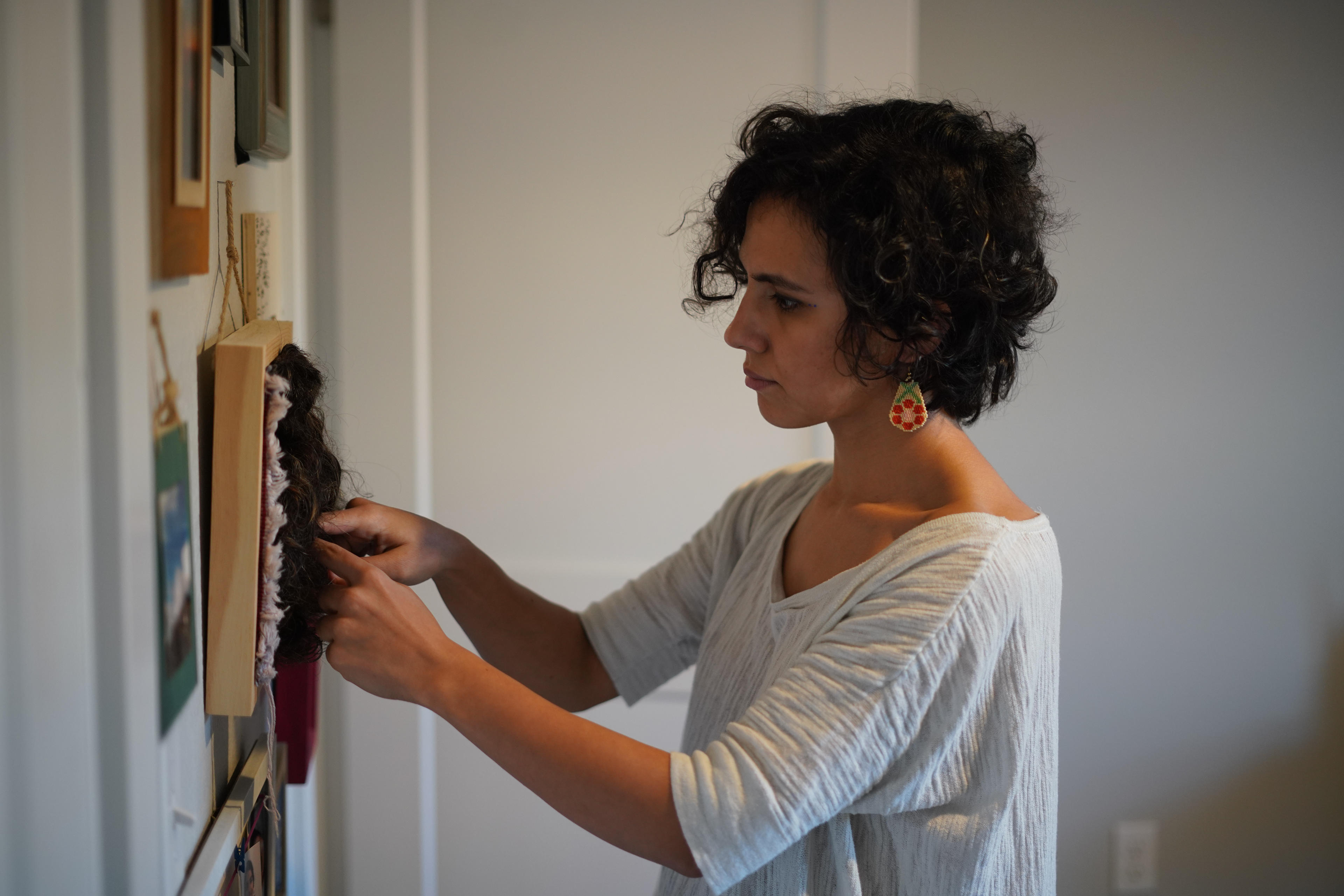 Aayanifard tenders their hair that they cut amidst growing protests in Iran in October 2022. Many Iranian women around the world cut their hair as a symbol of resistance against oppression and compulsory hijab for women in Iran.
